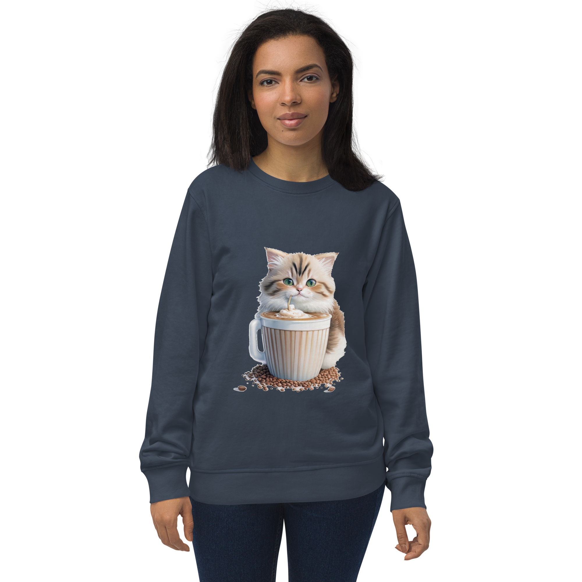 Adorit's Adorable Kitten Drinking Coffee Unisex Eco Organic sweatshirt is made of organic and recycled materials, and feels soft and cozy to the touch. It has set-in sleeves, 2×2 rib at collar, and a self-fabric neck tape. Order your next eco-friendly essential designed by PhilanthroBit and hit the streets in style!