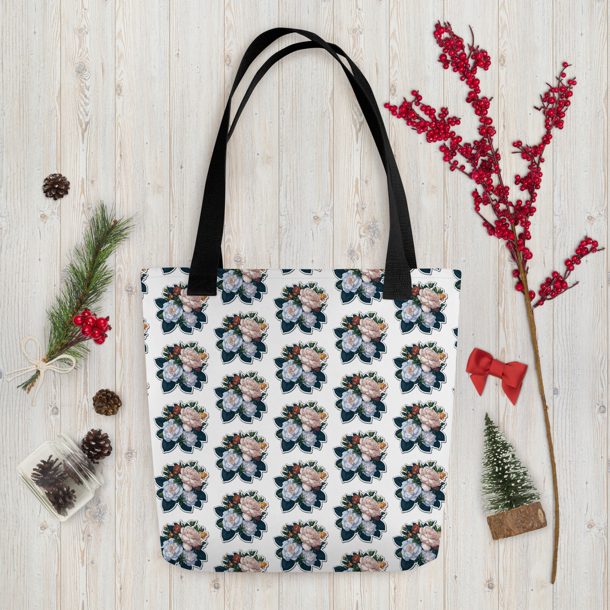 Adorit's beautiful, spacious and trendy Gardenias Bouquet 15"x15" floral pattern tote bag to help you carry around everything that matters.