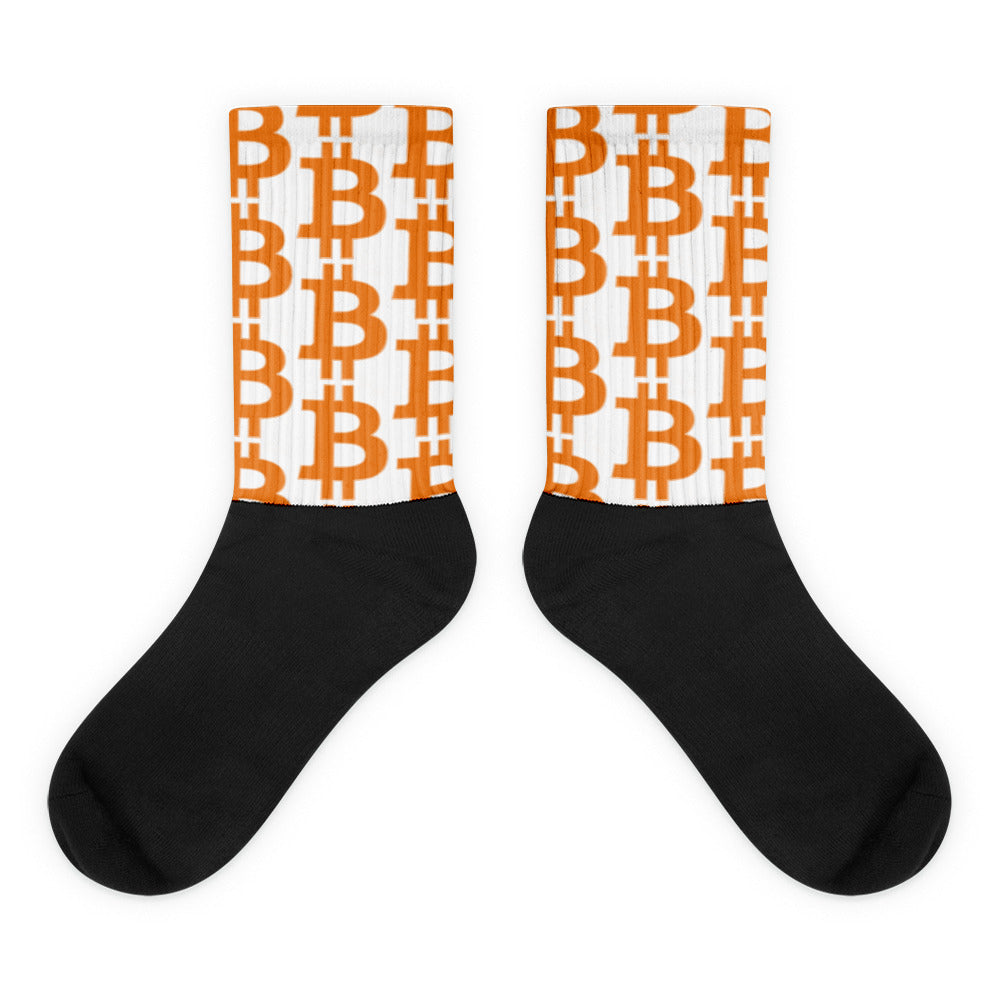 These Bitcoin pattern sublimated socks are extra comfortable thanks to their cushioned bottom. The foot is black...