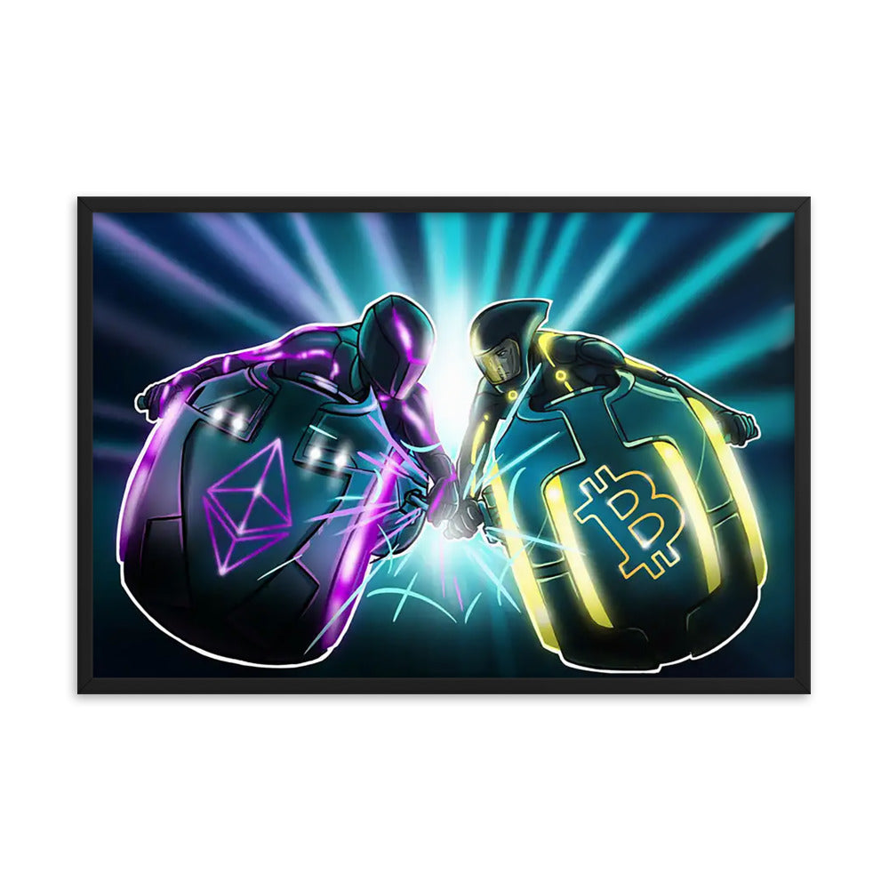 Beautiful framed poster of Bitcoin competing with Ethereum. As it's a large image, please look at the...