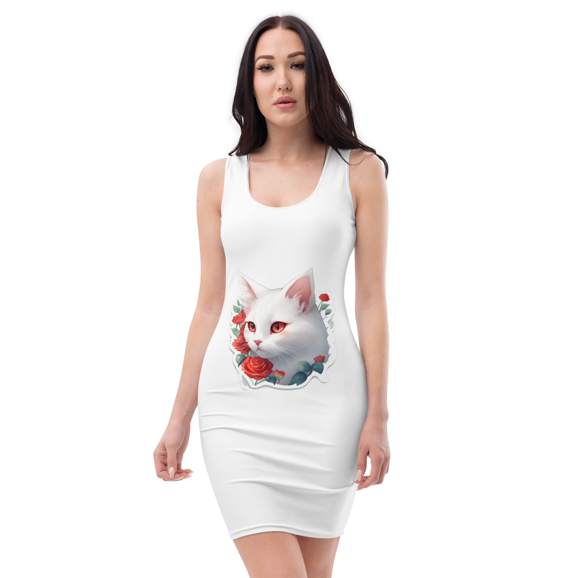 Make a statement and look fabulous in this White Kitten fitted dress by PhilanthroBit. The gorgeous custom sublimation design is printed on the front and back of the dress!