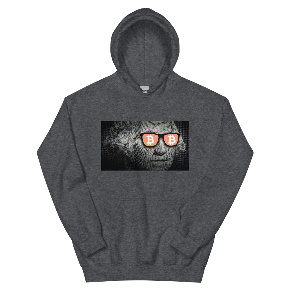 This hoodie features Washington (typically on the U.S. dollar bill) wearing Bitcoin Glasses. For those who believe...